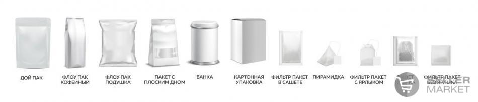 - в картон - пленку - дойпак - сашет - пирамидки - фильтр пакеты |